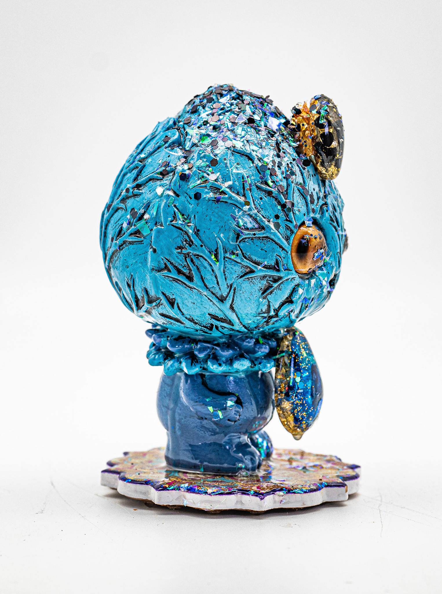 Seine blau-türkise, strukturierte Oberfläche erinnert an Eis, Wasser und winterliche Stille. Die großen Augen wirken wachsam, freundlich und aufmerksam zugleich – als würde Blue Cole mehr wahrnehmen, als er zeigt. Ein kleiner Wächter, der nicht auffällt, aber da ist, wenn man ihn braucht.