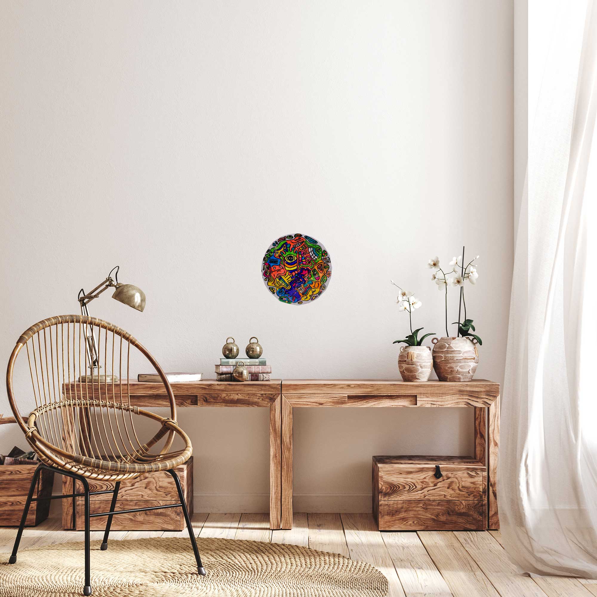 Leuchtende Farben in einem dichten, labyrinthartigen Muster. Dieses Werk wirkt wie ein elektrischer Gedankenstrom – ein Tanz aus Energie, Symbolik und freien Formen. Ideal für alle, die das expressive Chaos lieben.
