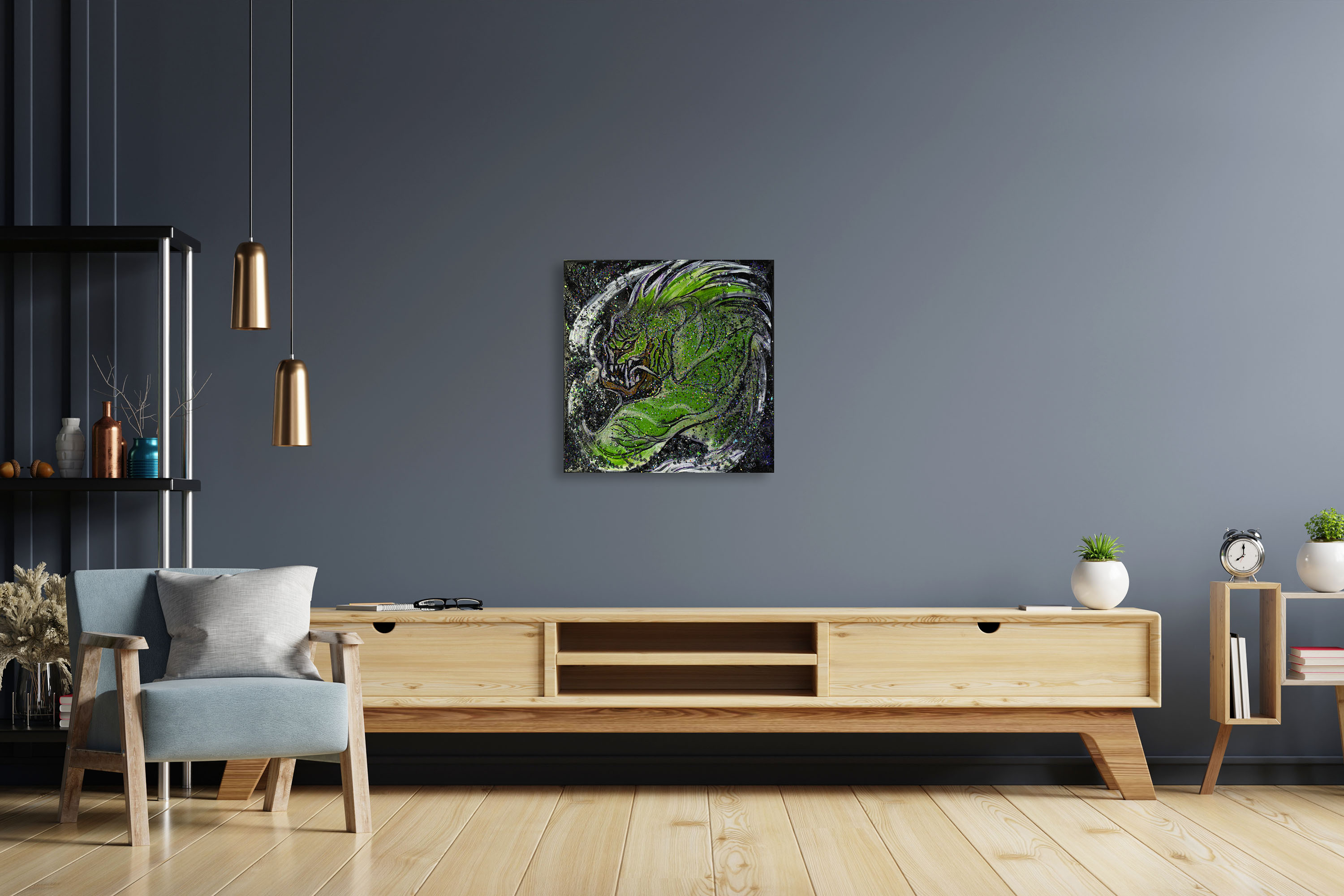 Als Kunstwerk wirkt Jerry nicht beruhigend. Er konfrontiert. Er erinnert an die ungezähmten Kräfte, die in uns wohnen können, wenn Kontrolle und Vernunft verblassen. Ein Werk für jene, die Ausdruck, Spannung und rohe Emotion suchen, statt sanfter Motive.
